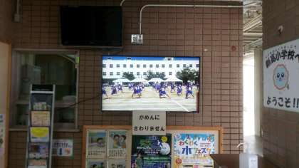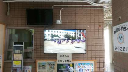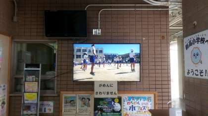 本番前日に行った予行練習の動画を玄関にあるデジタルサイネージを使って配信しています。しばらくの間、放映をしています。来校の折に、ご覧ください。