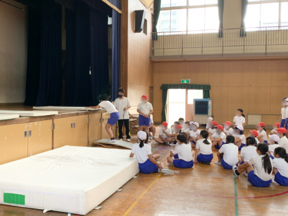 跳び箱の様々な跳び方に挑戦しました。お手本の人の良いところについて意見を出し合い、自分の動きの課題を認識することで、より良い跳び方ができるよう、頑張る姿が見られました。