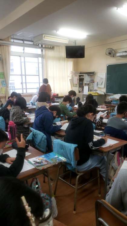 振り返りプリントに取り組んでいます。問題の中に、今年の大河ドラマの主人公明智光秀に関する問題もありました。