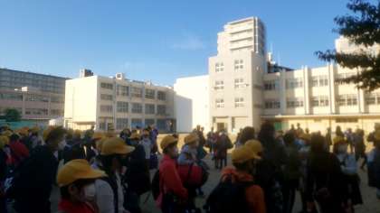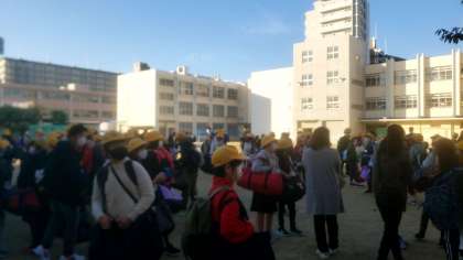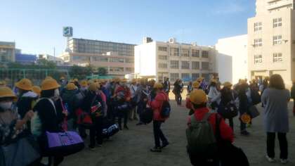 今日から 6年生は修学旅行に出発します。 今から出発式です。