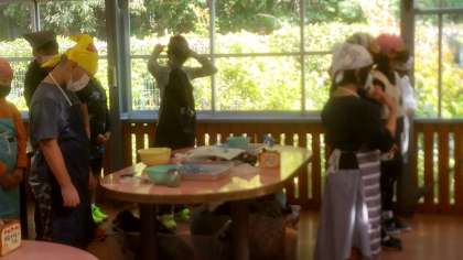 まずは係の方の説明を聞いています。みんな、しっかりと聞いています。