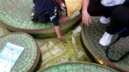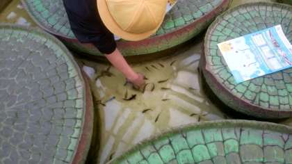 ドクターフィッシュがいてました。手を入れた瞬間、魚が一気に寄ってきて…