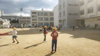 今日は風もなく、ポカポカ陽気。たくさんの子ども達が運動場で遊んでいます。ちらほら、先生方の姿も見えます。