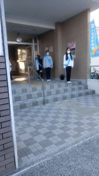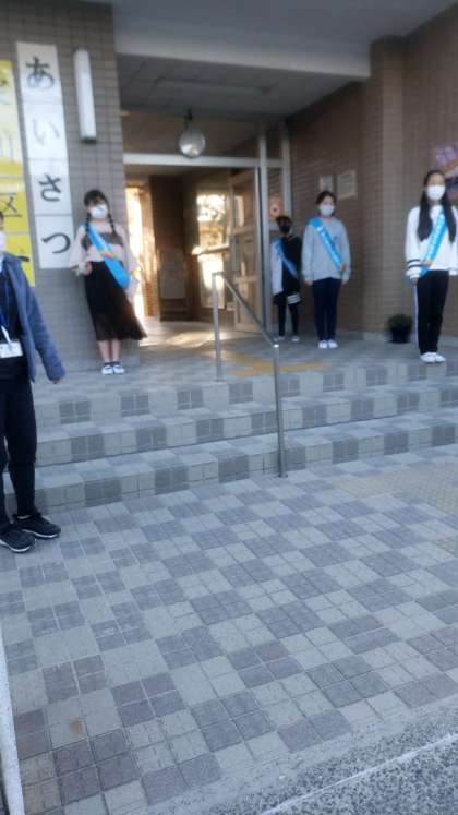 今週月曜日から始まった挨拶強調週間も、今日が最終日です。今日は4人の代表委員の皆さんがみんなに気持ちの良い朝のあいさつをしてくれていました。