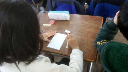 相手先の名前や住所を書く位置、自分の名前や住所を書く位置には、決まりがあることを学んだようです。