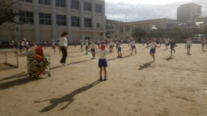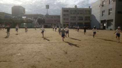 縄跳びの学習中です。リズムよく跳ぶことができたかな?