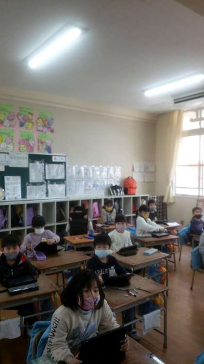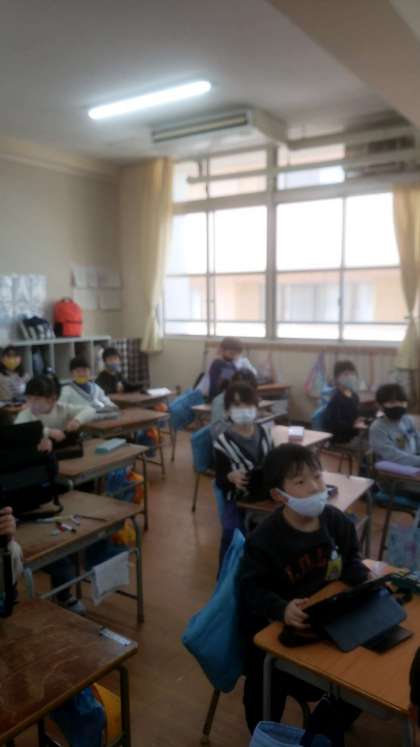 タブレットを使っての学習です。ICT支援員の先生にもサポート頂き、子ども達はとても意欲的に学習に取り組んでいました。