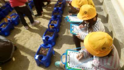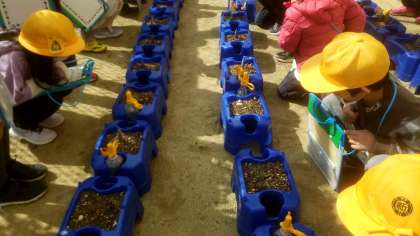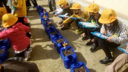チューリップの観察をしました。見るだけではなく、触ったり、匂いを嗅いだりと様々な感覚を使ってじっくりと観察しています。