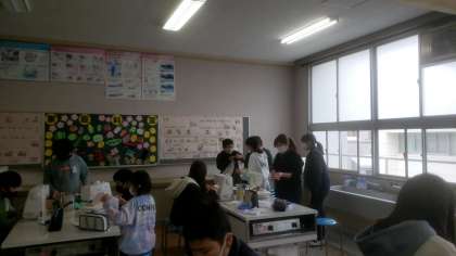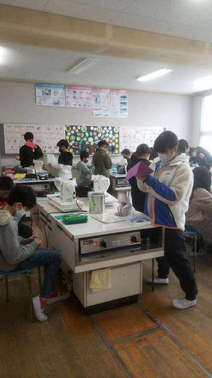 卒業まで1か月。感謝の気持ちと後輩に後を託す気持ちを込めて、1〜5年生にプレゼントするぞうきんを作っていました。