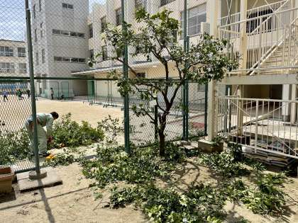 管理作業員さんがナツミカンの木を剪定してくださいました。