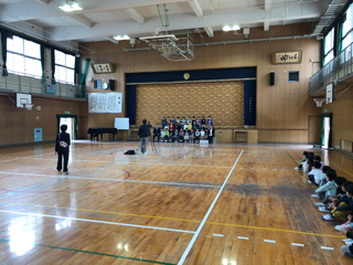 みんないい姿勢です。1年生、緊張気味かな。みんな、笑って笑って。