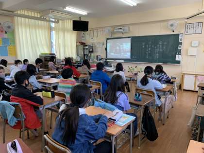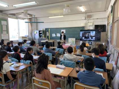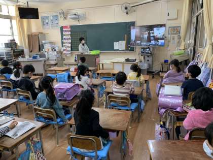 児童朝会では、校長先生から子どもたちへはげましの言葉や願いについてのお話がありました。