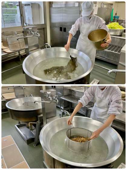 今日のすまし汁は、こんぶとかつおぶしの合わせだしです。