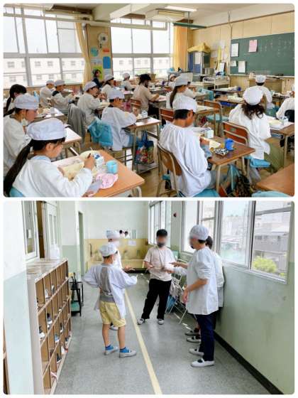 廊下では、おやすみの人がいて余っている牛乳を飲むために、牛乳ジャンケンが白熱していました。