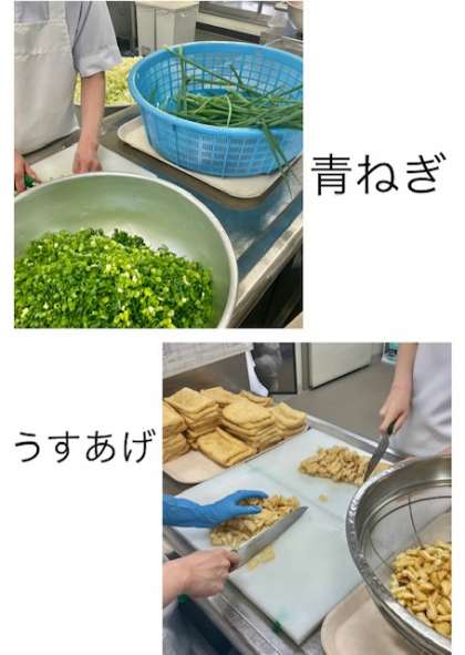 五目汁は、鶏肉、たまねぎ、キャベツ、たけのこ、青みに青ねぎ(写真5枚目)を使っています。