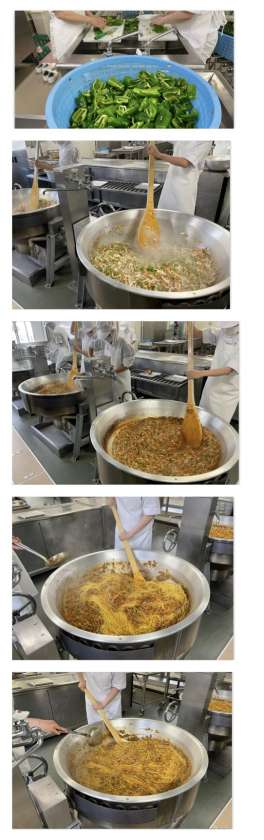 スパゲッティミートソースは、牛ひき肉、豚ひき肉を使い、小麦粉と綿実油で作ったブラウンルウで仕上げています。(写真2〜6枚目)