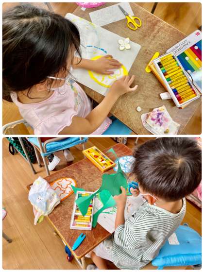 あじさいの葉は画用紙の線に沿って慎重に切ることができました。