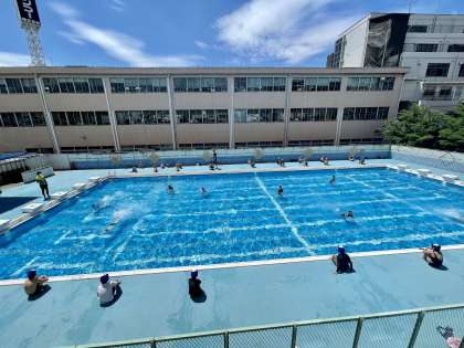 蹴伸びとバタ足の練習の後は、クロールで25m泳ぎました。