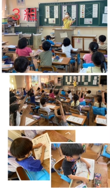 そして、給食に出た食べ物を思い出し、たくさんの食べ物が使われていることや、体にとって大切な働きをする3つのグループの食べ物が揃っていることを確認しました。