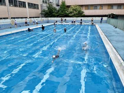 止まらずに泳げる人、途中で休憩しながら泳ぐ人、もう少し水に慣れる練習をする人。