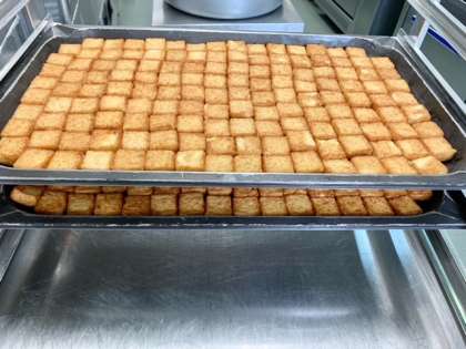 あつあげのしょうがじょうゆかけは、あつあげを焼き物機で蒸し焼きにし、しょうが汁、砂糖、こいくちしょうゆで作ったタレをかけています。(写真3枚目)