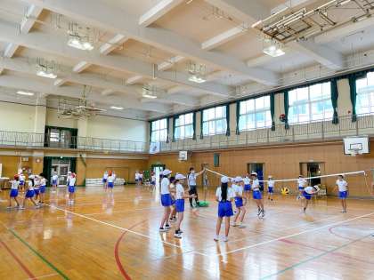 試合するチームと練習するチームに分かれて、キャッチバレーボールをしました。