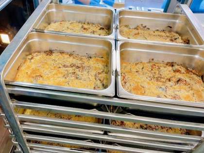 かぼちゃのミートグラタンは、旬のかぼちゃの甘みと牛ひき肉、豚ひき肉の旨みがとてもよく合うケチャップ味のグラタンです。(写真2枚目)