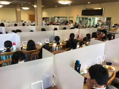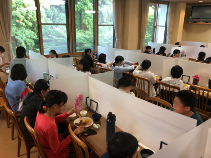 待ちに待った夕食の時間。安全に配慮しての配置です。