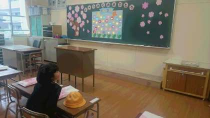 1年生の子どもたちは、お家の人たちと笑顔いっぱいで学校の門をくぐり、クラスと教室をみて、名札を先生につけてもらい、講堂へ向かいました。校長先生の話をよく聞いて、これからの小学校生活にわくわくさせているようでした。