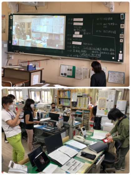 給食時、食物アレルギーの症状が出た子どもに対する対応について、実際に状況を設定し、子ども役、現場対応教職員役、職員室対応教職員役、それぞれの対応を客観的に観察して状況を分析する役に分かれて、ロールプレイのかたちで行いました。最後に対応の様子を記録してた動画を見たり、気づいたことを発表したりして、自分たちの行動が適切であったか、改善点は何か振り返りました。