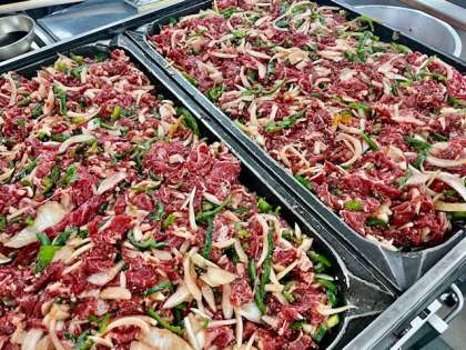 プルコギは、韓国・朝鮮の焼き肉です。コチジャンを使用し、少し甘辛い味つけにしています。(写真2枚目 焼く前、写真3枚目 焼いた後)