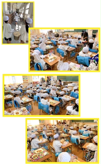 写真3〜5枚目 よくかんで給食を食べています。(1年1、2、3組)