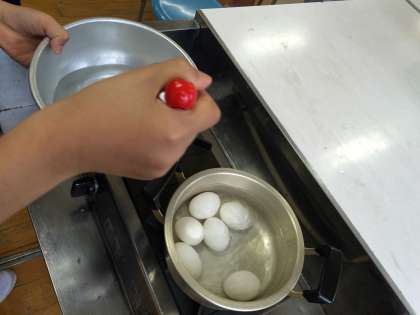 好みはそれぞれありますが、ガスのつけ方をしっかり覚え、ゆで時間を見ながら黄身が偏らないようにしながら、作っていくことができました。