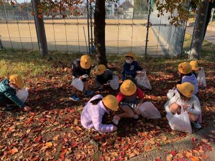 今日は、新高中央公園に「あきみつけ」に行きました。きれいな葉っぱや、どんぐり探しに夢中にな子ども達。他にもたくさんの秋を見つけることができました。とても楽しい活動になったみたいです。
