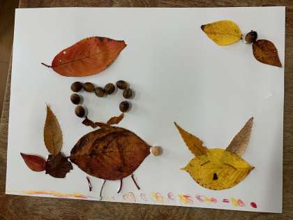 学校に戻ってからは、見つけた葉っぱや木の実を使って、とってもすてきな作品を作りました。