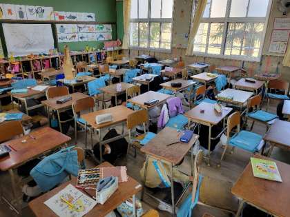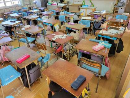 また、室内で遊ぶ時間だった低学年は、机の下にもぐり込んで頭と体を隠し、一次避難行動を取ることができました。