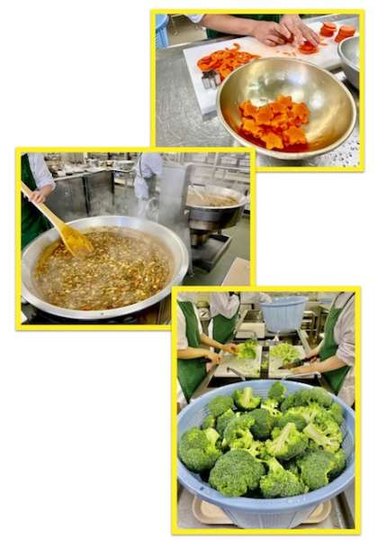 冬野菜のカレーライスは、冬が旬のだいこん、れんこんなどを使用しています。ラッキーにんじん(給食調理員さんが1つずつ丁寧に型抜きで様々な形を作ってくださっています)が入っています。クラスに数個のラッキーにんじんが自分のお皿に入るかどうか、子どもたちは楽しみにしています。(写真2、3枚目)