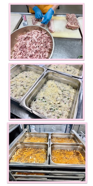 きのこのドリアは、しめじ、エリンギ、マッシュルームを使用し、ベーコンでうまみを、クリームでコクを出しています。(写真2〜4枚目)