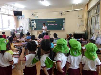 3時間目、新高幼稚園の子どもたちが1年生の授業の様子を見学にきました。