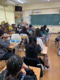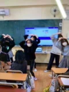 5,6時間目に茶話会を行いました。前半は、感染対策のため各クラスでTEAMSを使って交流しました。クイズありダンスありの楽しいひと時を6年生のみんなで過ごすことができました。