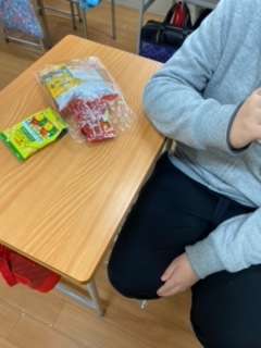 後半は、クラスでのおやつタイムです。グミやラムネ、ポテトチップスを楽しみました。前を向いてのおやつタイムは少し残念ですが、それでもみんな笑顔で楽しそうでした。