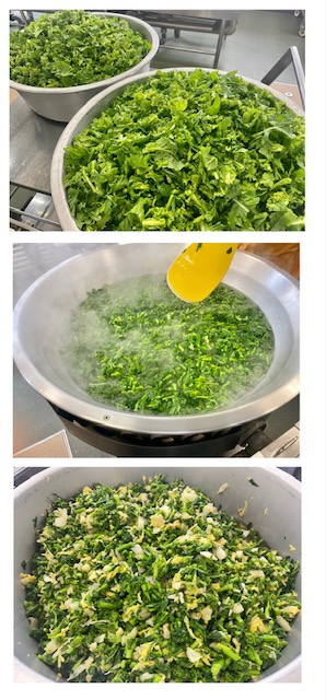 なのはなのおひたしは、一年でこの時期だけ味わうことができるなのはなを、だしをきかせたしょうゆ味の調味液であえ、小袋のかつおぶしをかけていただきます。はくさいを組み合わせることで、なのはなの苦みをおさえ、食べやすくしています。(写真2〜4枚目)
