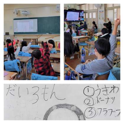 答えが発表されると、各教室にイエーイ!と喜ぶ声や、ええっ?と驚く声が広がり、楽しい時間を過ごすことができました。