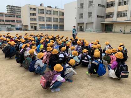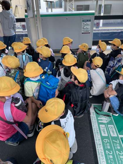 十三駅までの電車の中は混雑していましたが子どもたちは静かに乗っていました。ホームで待っている姿も立派です。