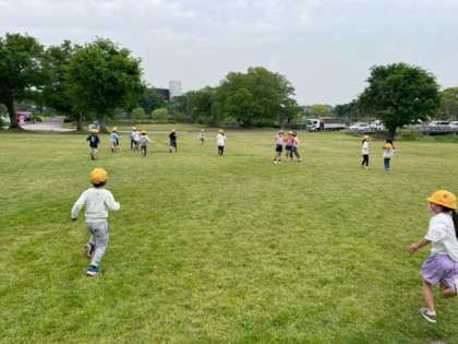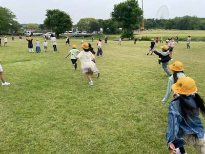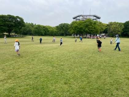 公園に到着。広い芝生広場で、さあ、遊ぶぞー!