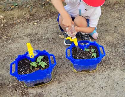 自分や友だちの芽の数を数える子、話しかけるように水やりをする子がいます。