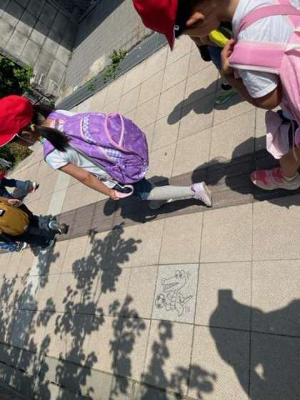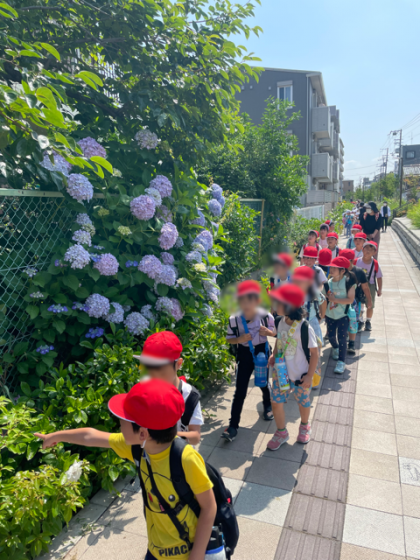 スポーツしているワニの絵のタイルの数を数えたり、アジサイを見たり。楽しそうです。