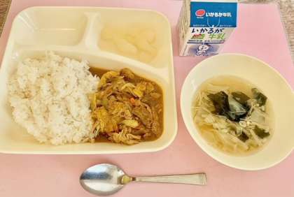 【和風カレー丼、すまし汁、和なし(カット缶)、牛乳】