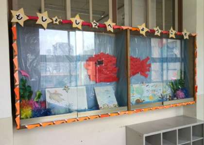 図書ボランティアのみなさまが、図書室前掲示板のディスプレイをきれいに仕上げてくれました!これで図書室へ行く楽しみが増えましたね。
