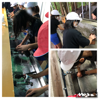 水の冷たさに驚きながらも、一生懸命みがいていました。